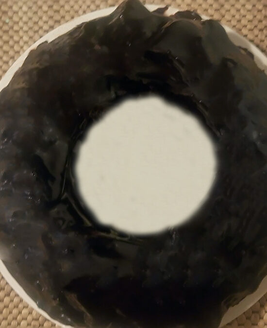 Για την επικάλυψη μπορείτε να του δώσετε λευκή όψη με κοσκινισμένη ζάχαρη άχνη (τελικά έτσι το προτιμώ όταν μάλιστα η φόρμα έχει και σχέδια) ή σοκολατένια σκούρα όψη με την ακόλουθη κουβερτούρα. Σε κατσαρολάκι λιώνεται το βούτυρο, προσθέτεται το γάλα και την ζάχαρη και το κακάο. Ανακατεύοντας συνεχώς μόλις πάρει μια βράση το βγάζετε από την φωτιά. Ξεφορμάρεται το έτοιμο κέικ σε μια πιατέλα και το καλύπτεται με την σπιτική σας κουβερτούρα.
