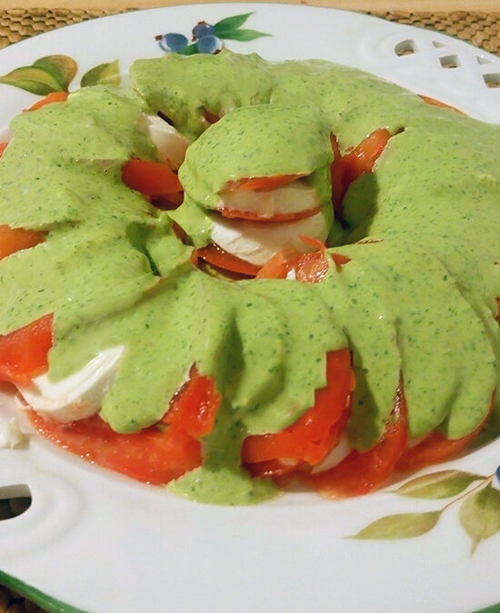 Ντομάτα με μοτσαρέλα με πέστο μαϊντανού.